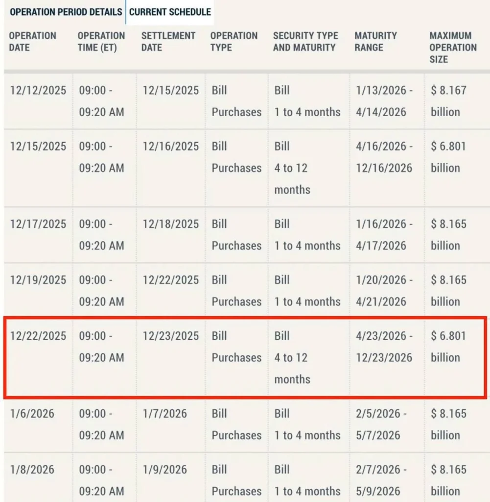 The US Federal Reserve plans to inject about $6.8 billion into financial markets on December 22, 2025 to reduce year-end funding pressure. This will be done through repurchase agreements, also known as repos. It is the first time since 2020 that the Fed is adding liquidity to the market using this method.